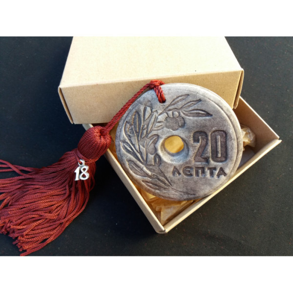 Red charm with greek old coin